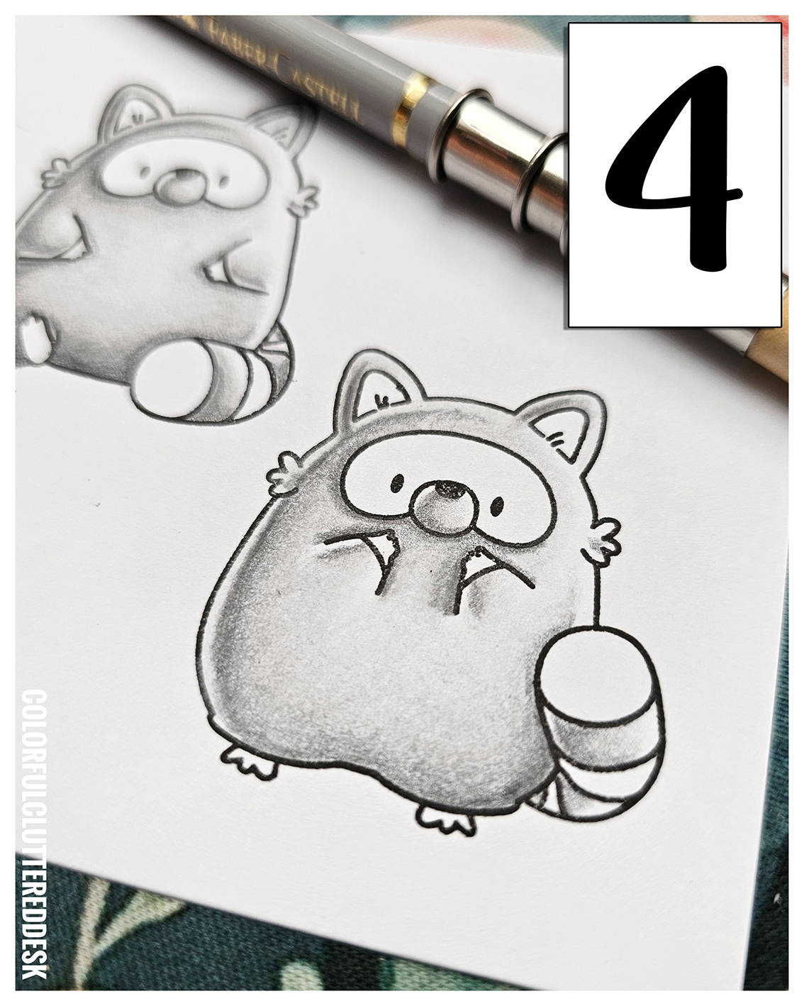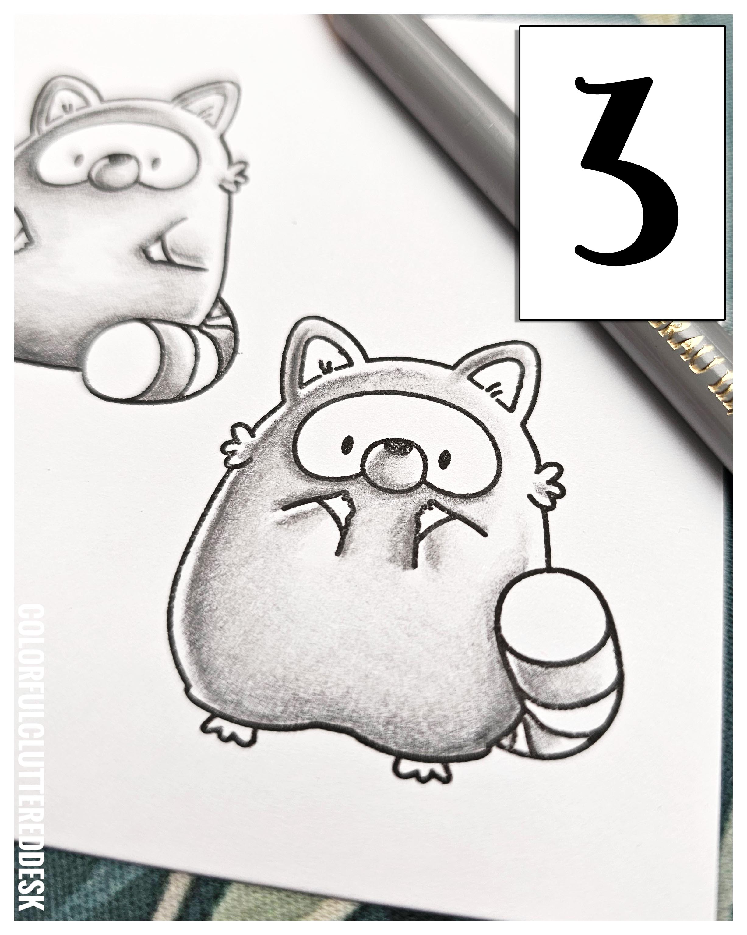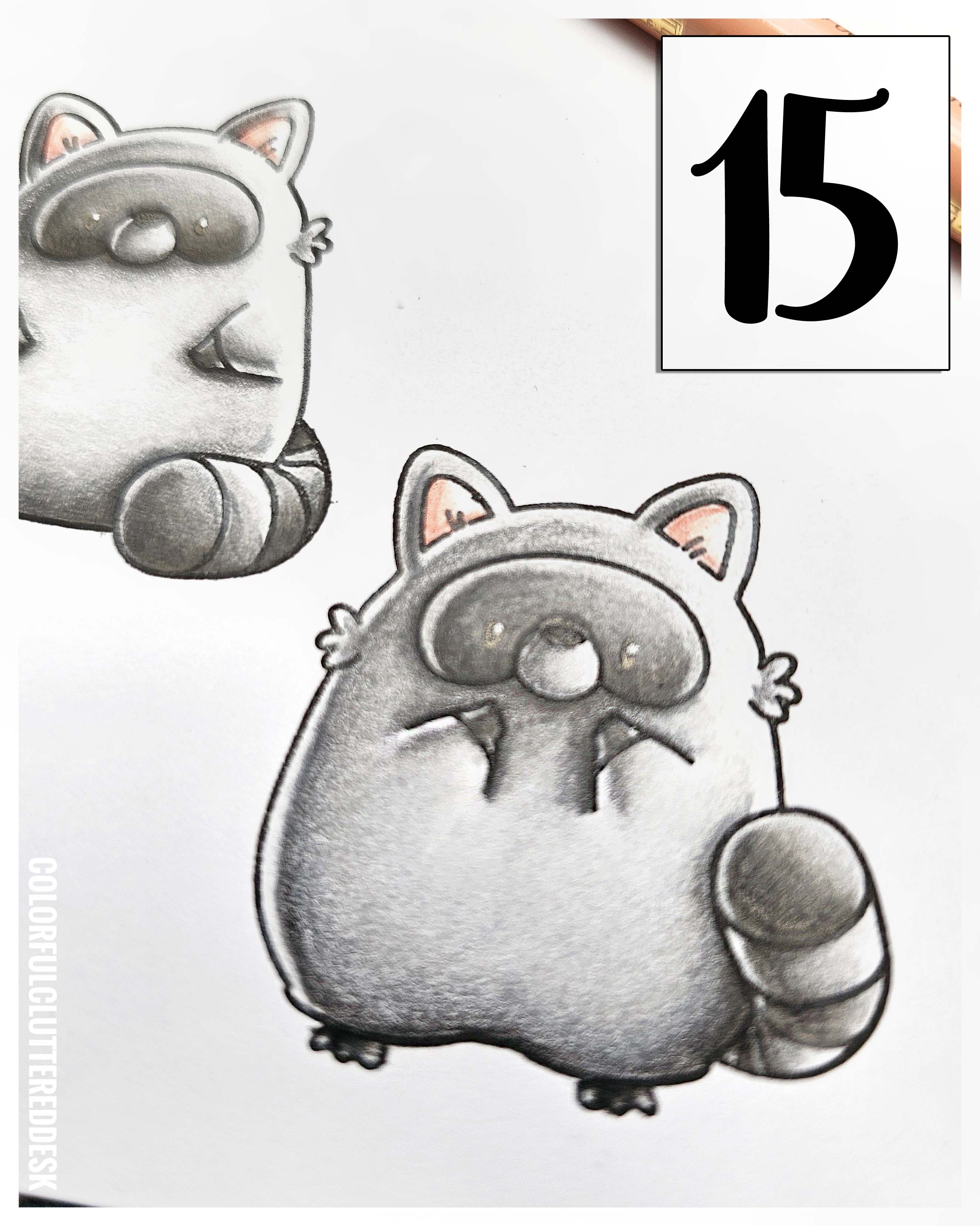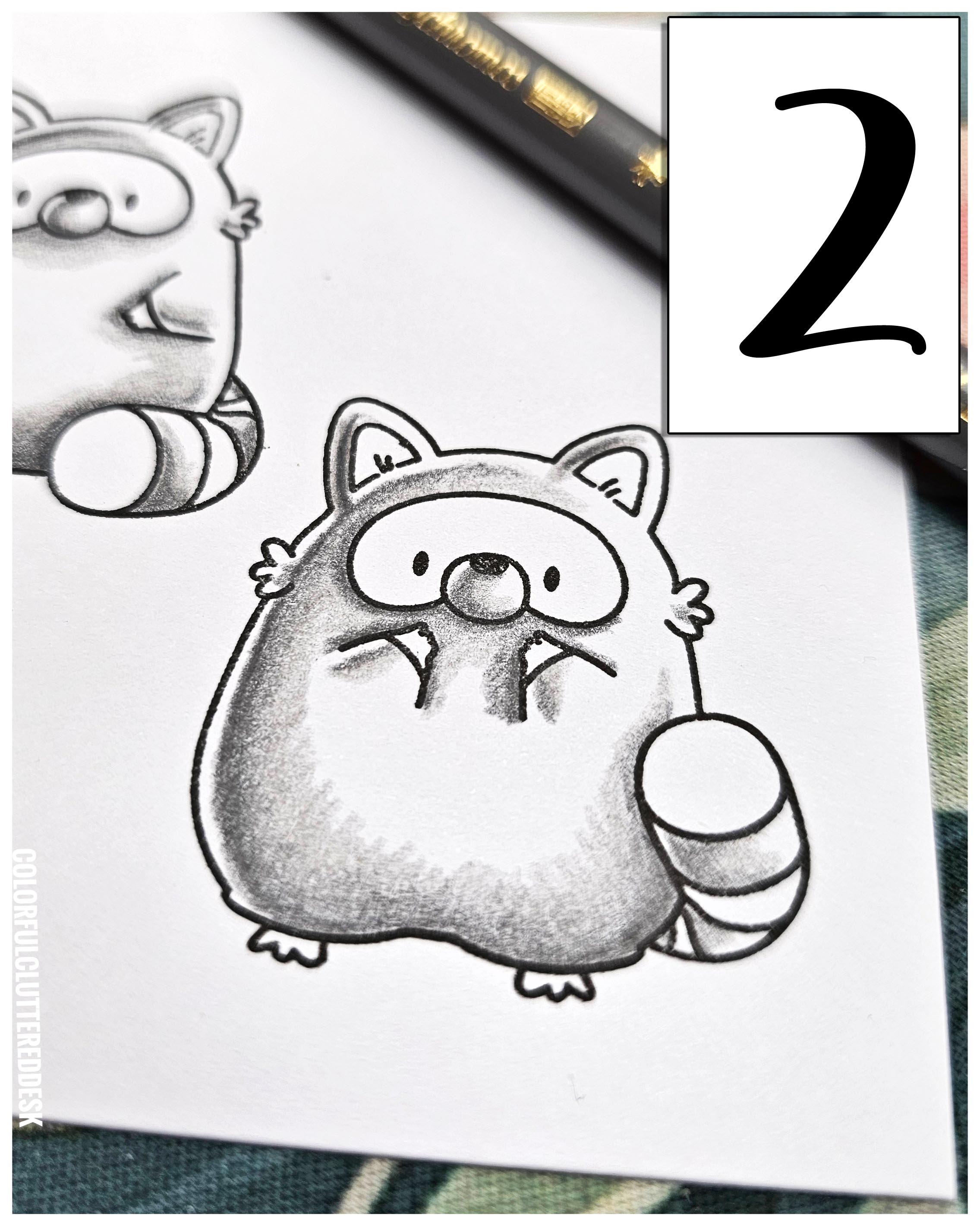 Hallo liebe Bastelfreunde! Heute zeigt Ginger euch, wie ihr dem entzückenden Stempelset von Mama Elephant "Playful Racoons" mit ein paar einfachen Schritten Tiefe und Lebendigkeit verleiht. Wir arbeiten mit dem Lawn Fawn "Premium Hybrid Jet Black" Stempelkissen und einer Auswahl an Polychromos: in den Grautönen 199, 101, 181, 233, 232, 231 und für die Ohren in den Farbtönen 190, 132, 169 und 103.