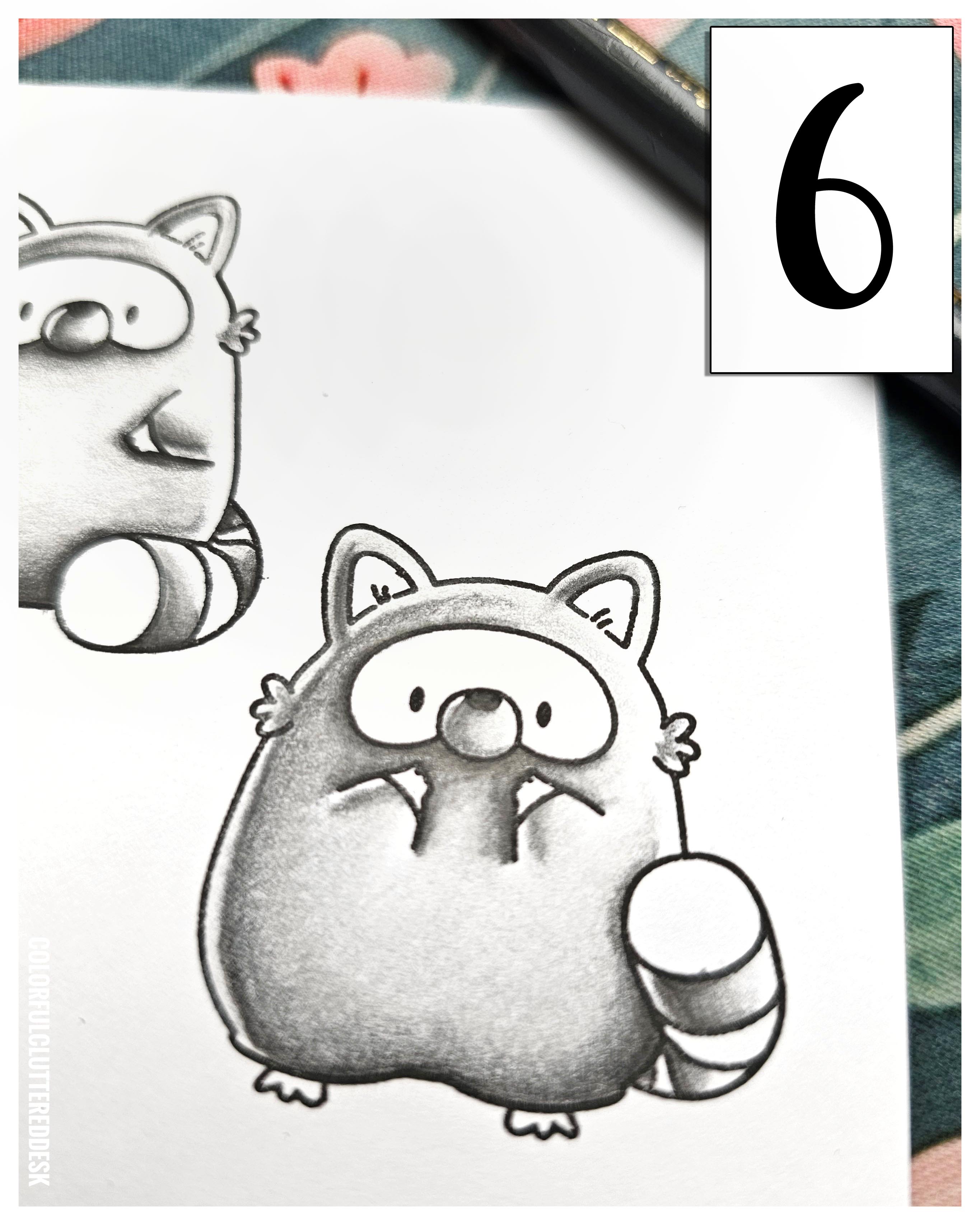 Für die dunkelsten Akzente kommt Schwarz "199" zum Einsatz. Mit diesem intensiven Farbton betont Ginger nur sehr kleine, spezifische Bereiche – wie zum Beispiel unter dem Gesicht, an den Armen und der Schnauze des Waschbären. Seid hier sparsam und präzise!