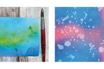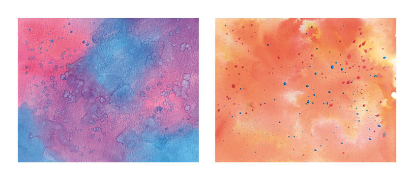 Mit einer Sprühflasche könnt ihr tolle Effekte erzielen. Je weiter ihr sie vom Papier weg haltet, umso feiner die Sprenkel.