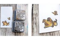 Habt ihr Farbe auf dem Stempel, könnt ihr auch hier Wasser darauf sprühen, um einen weicheren Stempelabdruck zu erhalten. Letzteres ist gut für die Hintergrundgestaltung geeignet, da sich der Abdruck besser mit dem Untergrund verblendet.