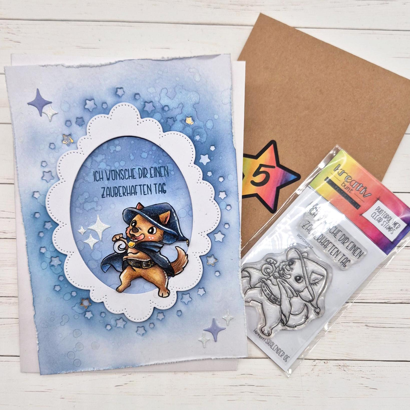 Mit Türchen 5 (Artikel-Nr. 00117820) öffnet sich zugleich die Welt der Magie. Der darin enthaltenen Kater wünscht einen zauberhaften Tag. Cindy (@shadowschatti) hat ihn mit der "Dreamy Frame" Stanze (Artikel-Nr. 00113177) einen schönen Rahmen gegeben und zauberhaft in Szene gesetzt.