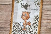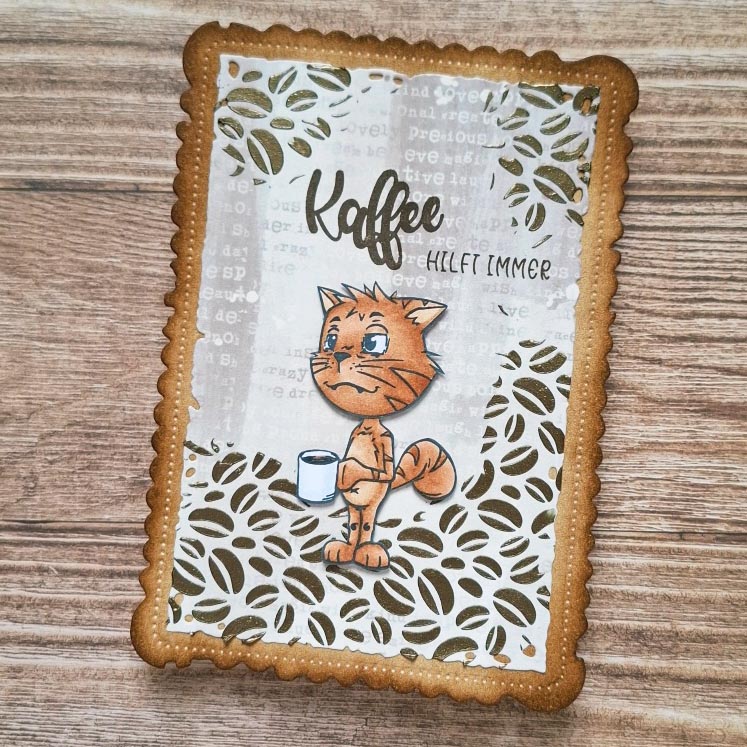 Für Kaffee- und Teetrinker bietet das heutige 15. Tütchen ein paar Texte. Anna (@creative.anna) hat für diese Karte das Designpapier "Coffee & Cream" (Artikel-Nr. 00105654) verwendet, auf dem sie mit der Schablone "Coffee-Beans" (Artikel-Nr. 00050326) und der Lunar Paste "Grrr!" (Artikel-Nr. 00097677) noch ein paar Kaffeebohnen platziert hat. Der noch etwas müde Pixel mit seiner Tasse stammt aus dem Adventskalender 2024 (Artikel-Nr. 00104805).