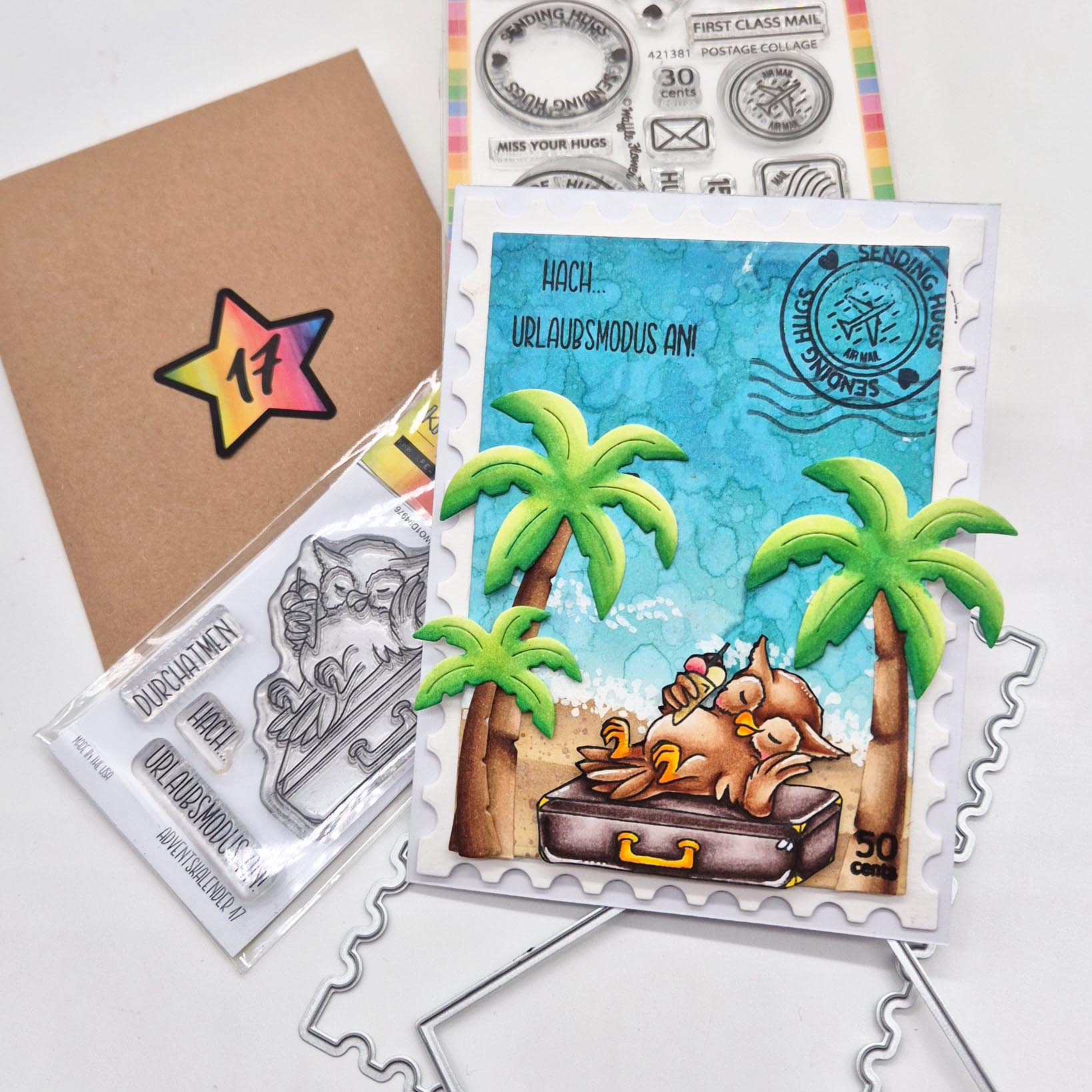 Während viele von euch im hektischen Treiben des neuen Jahres stecken, träumt Nuppi (Artikel-Nr. 00117820) schon vom nächsten Urlaub. Cindy (@shadowschatti) hat sie zumindest schon mal auf der "Oversized Postcard" (Artikel-Nr. 00115831) in Urlaubsstimmung versetzt. Die Palmen von der Lawn Fawn Hintergrund Stanze "Tropical Backdrop" (Artikel-Nr. 00021522) vervollständigen die Stimmung.