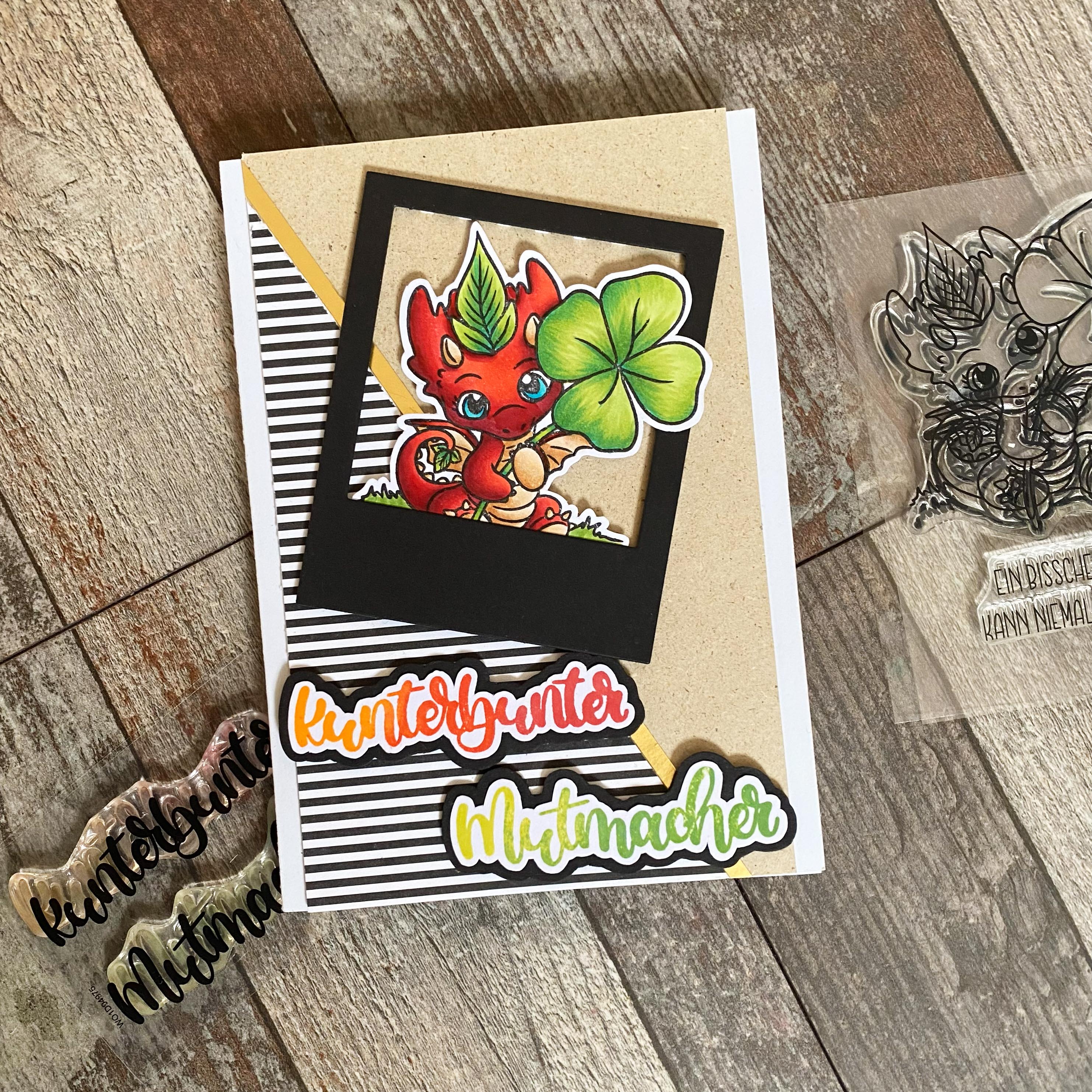Manchmal braucht man einfach eine kleine Aufmunterung. Mit dem 19. Türchen aus unserem diesjährigen Adventskalender (Artikel-Nr. 00117820) hat Alex (@_alex.noir_) eine Karte gebastelt, die dem Empfänger ein bisschen Hoffnung und Mut bringen soll. Verwendet hat sie außerdem unser Stempelset "Drache Dipsi mit Kleeblatt" (Artikel-Nr. 00115027) und die Stanze "Polaroid Fotorahmen" (Artikel-Nr. 00113458).