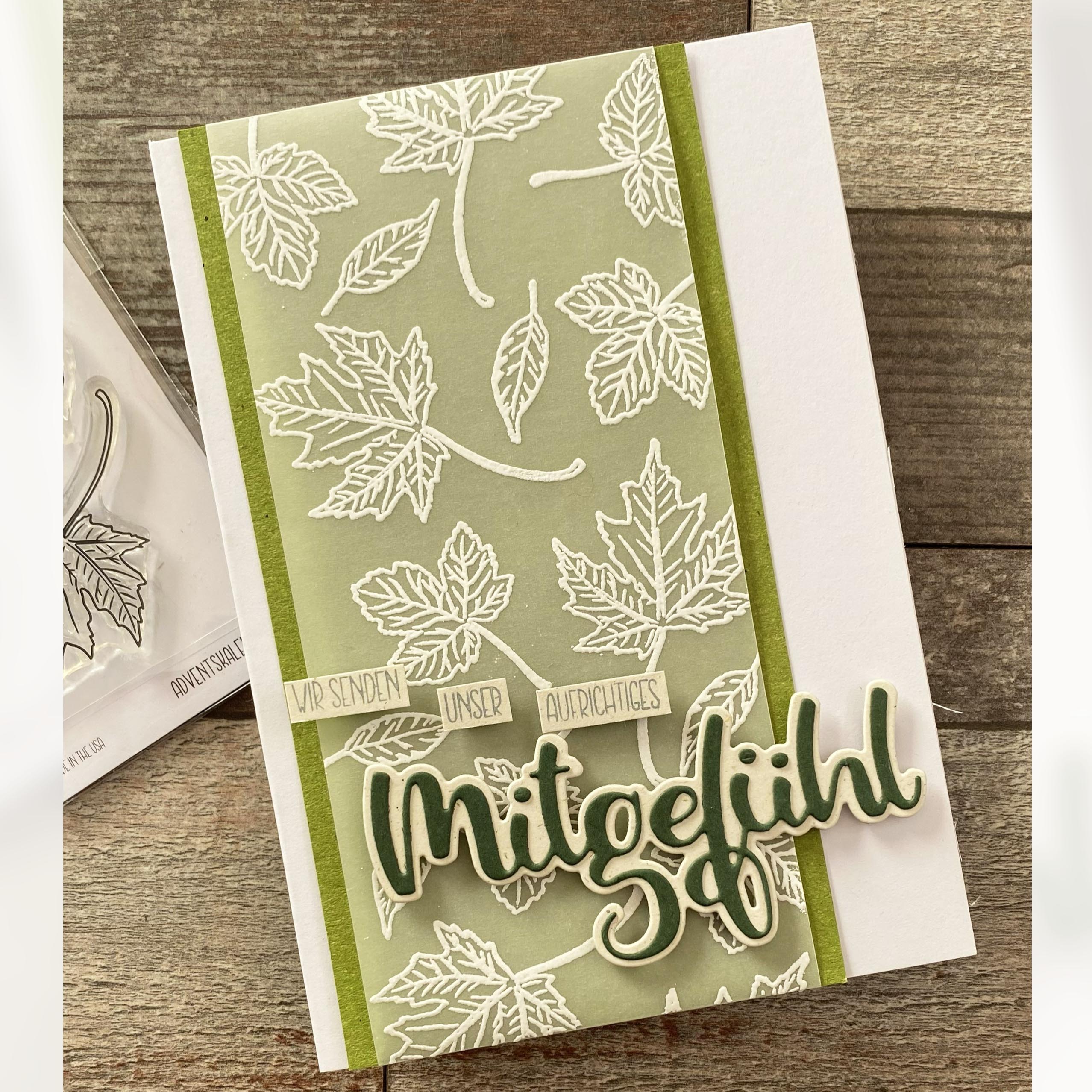 Die Blätter aus dem 22. Türchen aus unserem Adventskalender 2025 (Artikel-Nr. 00117820) sind vielseitig einsetzbar. Alex (@_alex.noir_) hat sie mit unserem Stanzset "Layered Mitgefühl" (Artikel-Nr. 00098915) und dem passenden Stempelset "Lettering Mitgefühl" (Artikel-Nr. 00098914) kombiniert und damit eine schlichte und edle Trauerkarte gebastelt.
