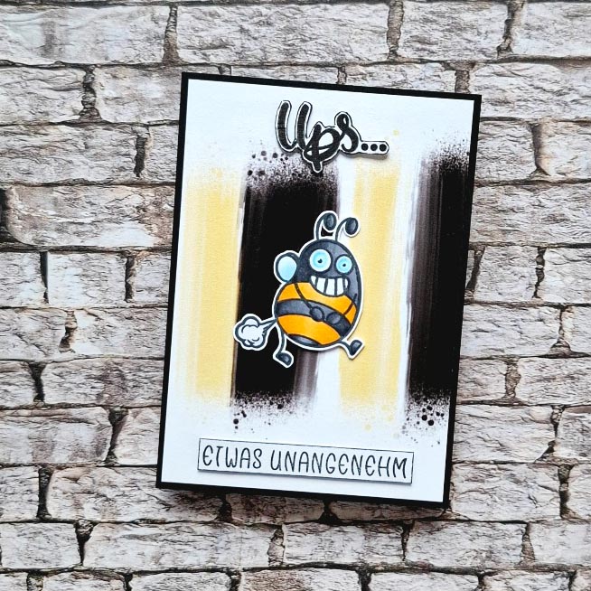 Als Motiv für das Textset im heutigen 23. Türchen hat sich Anna (@creative.anna) für die pupsende Biene aus "Bizzy Bees" (Artikel-Nr. 00092264) entschieden, welche sie zusammen mit dem Spruch auf dem Designpapier "Honey & Lemon" (Artikel-Nr. 00107135) platziert hat.