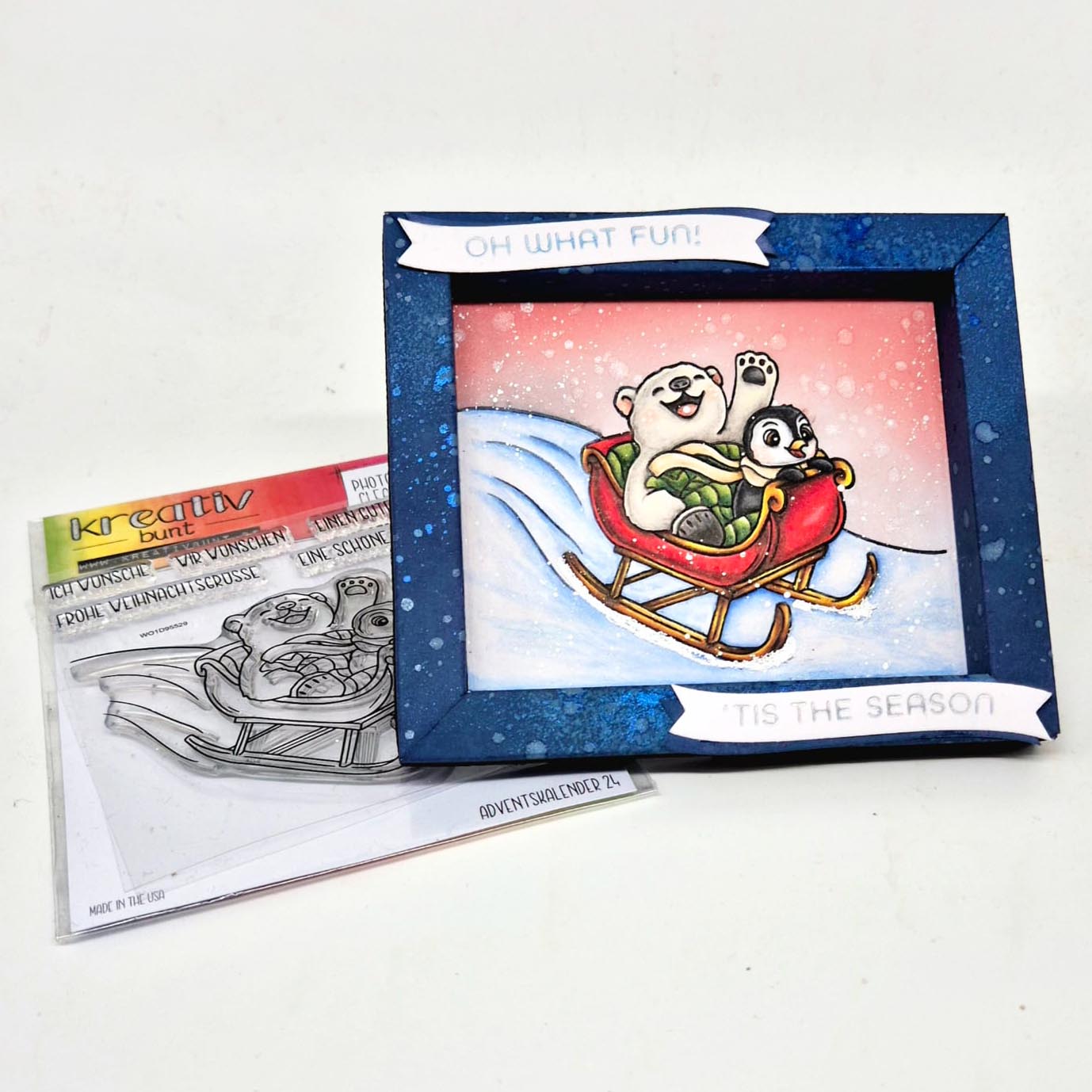 Passend zum süßen Polarfuchs Auri (Artikel-Nr: 00121721) wird Anke (FB: Zwischen Farbe und Wort) die Karte nach Finnland verschicken. Für den Hintergrund hat sie den Stempel mit der Luftpolsterfolie aus dem vierten Adventskalender-Türchen (Artikel-Nr. 00117820) verwendet. Dazu noch etwas Funkeln und einen Gruß (Artikel-Nr. 00121723) - fertig ist die goldige Winterpost.