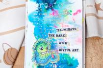 Jetzt in den grauen Wintertagen kann etwas mehr Farbe nicht schaden. Deswegen hat sich Anke (FB: Zwischen Farbe und Wort) eine aufmunternde Art Journal Seite kreiert. Dazu hat sie sich dem goldigen Seepferdchen aus dem zweiten Adventskalender-Türchen (Artikel-Nr. 00117820) ein paar Aquarellfarben und einem schönen Spruch aus dem Sticky Quotes Collector's Book (Artikel-Nr. 00107448) von StudioLight bedient. mit ein wenig Glitter-Acrylfarbe (DecoArt) bekommt die Seite noch ein schönes Funkeln.