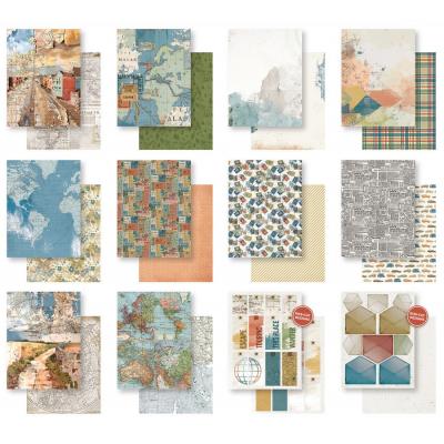 Bunte Kollektion zum Thema Reise, mit vielen Landkarten, Koffer, Autos, Flugzeuge und weitere hübsche Motive, um den nächsten Urlaub gebührend festzuhalten.