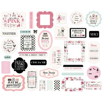 Eine feminine Kollektion mit dem Thema Mode und Paris in Rot- und Rosatönen, Hellblau und Schwarz. Beinhaltet Motive wie den Eiffelturm, viele Kleider und Geschäfte.