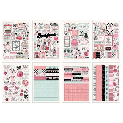 Eine feminine Kollektion mit dem Thema Mode und Paris in Rot- und Rosatönen, Hellblau und Schwarz. Beinhaltet Motive wie den Eiffelturm, viele Kleider und Geschäfte.
