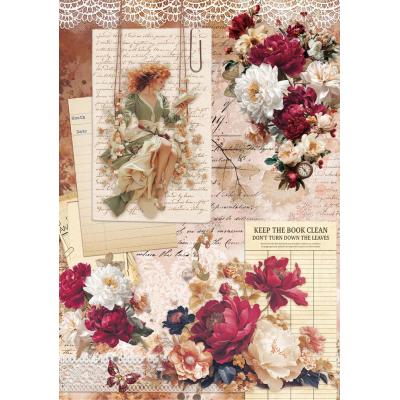 "Book Lovers" ist eine romantische Kollektion für alle die Bücher lieben und schafft die Atmosphäre eines heimeligen Rückzugsort. Motive wie junge Frauen, Bücher, Blumen, Briefe und Schreibmaschine in Beige, Weinrot, Weiß und Grüntönen bieten die Grundlage für vielerlei Projekte.