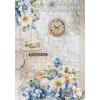Vintage Kollektion zum Thema Reisen mit hübschen Szenen und Motiven wie Züge, Ferngläser, Karten und Blumen in den vorwiegenden Farben Blau, Gelb, Creme und Braun.