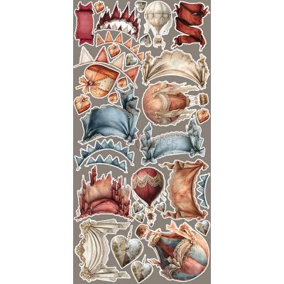 18 doppelseitig bedruckte Bögen in 9 Designs mit Motiven zum Ausschneiden. Das Papier ist 15,25 x 31,5cm groß und hat eine Stärke von 250gsm.