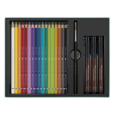 In diesem Set treffen Aquarellstift und wasserfester Zeichenstift aufeinander. Die Albrecht Dürer Aquarellstifte (3,8mm Mine) bieten Vielseitigkeit zum Zeichnen, Schraffieren und Aquarellieren. Mit etwas Wasser verwandeln sich die Farben in intensive Aquarelleffekte.
