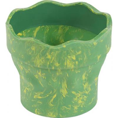 Einfach faltbarer Wasserbecher mit welligem Rand als Pinselablage.