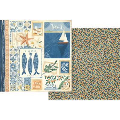 Schöne Kollektion mit einer Menge Mittelmeer Vibes, die durch die Farben Blau, Gelb, Orange und Weiß noch verstärkt werden. Maritime Motive wie Fische, Seesterne und Strände treffen auf Blumen und Zitrusfrüchte.