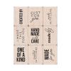 9 kleine Stempel, montiert auf Holzblöcken. Vielseitig ohne weitere Hilfsmittel einsetzbar.