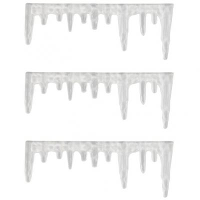 Das Set enthält 3 transparente, geformte Eiszapfenstreifen aus Kunststoff. Sie sind einfach zu schneiden, zu kleben und nach Bedarf zu formen.