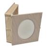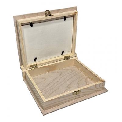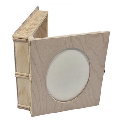 Kiefernholz-Fotorahmen in Buchform mit einer Plexiglasfront.