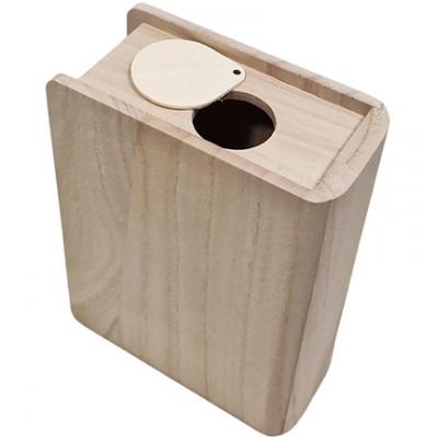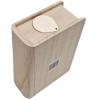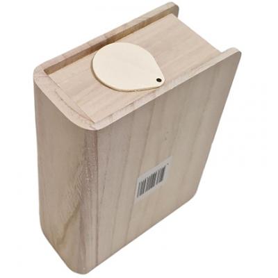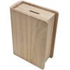 Spardose aus Holz in Buchform.