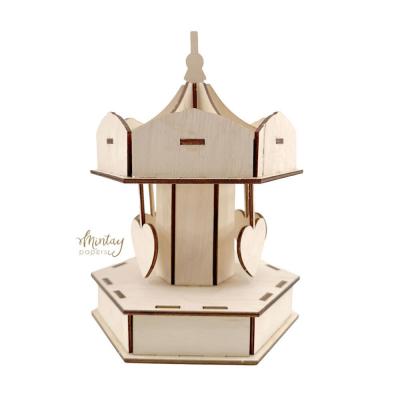 Bausatz aus 3mm starkem Sperrholz für ein 28,5 x 11 x 11,5cm großes Karussell.