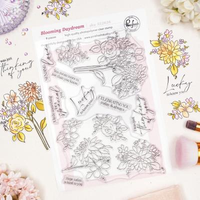 Das Stempelset "Blooming Daydream" (Artikel-Nr. 00127274) stammt von der Designerin Inna Moreva. Passend dazu sind im Shop Outline-Stanzschablonen (Artikel-Nr. 00128421) und Schablonen zur schichtweisen Koloration der Motive (Artikel-Nr. 00128420) erhältlich. Das Washi Tape passt im Design perfekt zu dem Set und hat eine Länge von ca. 10m sowie eine Breite von 10cm (Artikelnummer: 00128419).