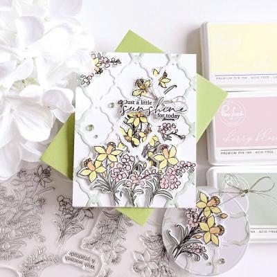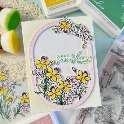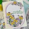 Das Stempelset "Whispering Daffodils" (Artikel-Nr. 00128430) stammt vom The Whimsical Creative Design Studio. Passend dazu sind im Shop Outline-Stanzschablonen (Artikel-Nr. 00128429) und Schablonen zur schichtweisen Koloration der Motive (Artikel-Nr. 00128428) erhältlich. Das Washi Tape passt im Design perfekt zu dem Set und hat eine Länge von ca. 10m sowie eine Breite von 10cm (Artikelnummer: 00128427).