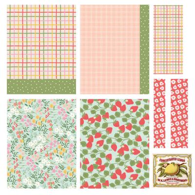 Eine eher feminine und fröhliche Kollektion. Rot, Pink, Grün und Gelb geben den Früchten, Blumen, Sprüchen und Mustern einen sommerlich warmen Touch. Perfekt für Projekte rund um Küche oder Sommerparties.