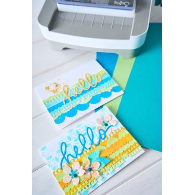 Zur Verwendung der bei uns erhältlichen hochwertigen Stanzschablonen wird eine Stanz- und Prägemaschine (bspw. Sizzix BigShot) benötigt. Die Metallstanzen werden gemeinsam mit Papier durch die Maschine gekurbelt und schneiden dabei die Motive aus dem Papier aus.