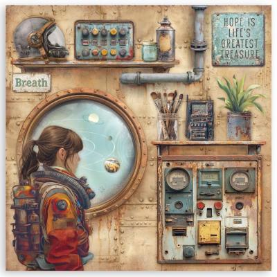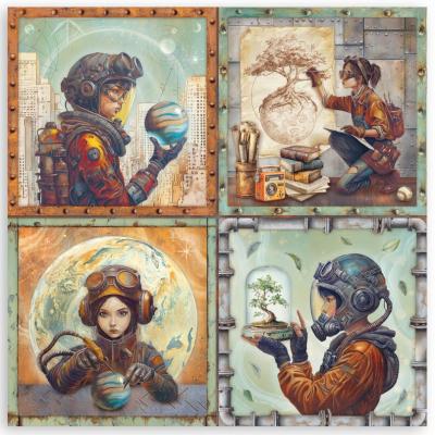 Eine Kollektion von Stamperia mit handgemalten Motiven des Künstlers César Chavarria. Hier wird ein aktuelles Thema - das Zusammenspiel von Mensch, Technik, Zukunft und Natur - behandelt. Die Kollektion bietet alles, um euren eigenen Fantasien und Hoffnungen für die Zukunft freien Lauf zu lassen. Die-Cuts, Rub-Ons, Schablonen, Farben, Moulds sowie Reispapier und Designpapier uvm. geben euch eine gute Grundlage für allerlei kreative Projekte.