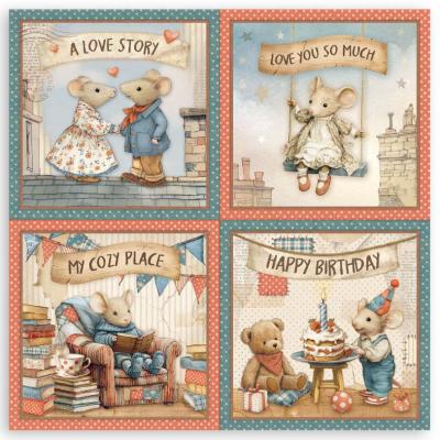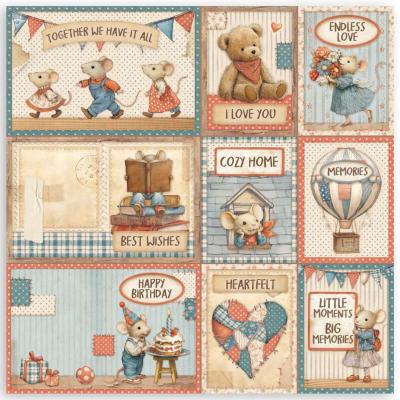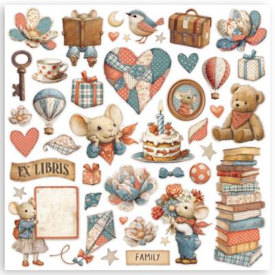 Wie der Titel der Kollektion schon sagt, dreht sich alles um das Thema Familie und Zuhause. Die Hauptrolle spielt eine süße Mäusefamilie. Alle Motive (wie Häuser, Interieur, Leckereien, Ballons und ganz viele Herzen) sind kunstvoll und heimelig gestaltet und sind in den Farben Rot, Beige und Blau gehalten.