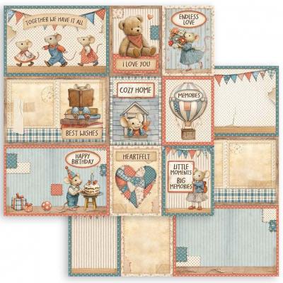 Wie der Titel der Kollektion schon sagt, dreht sich alles um das Thema Familie und Zuhause. Die Hauptrolle spielt eine süße Mäusefamilie. Alle Motive (wie Häuser, Interieur, Leckereien, Ballons und ganz viele Herzen) sind kunstvoll und heimelig gestaltet und sind in den Farben Rot, Beige und Blau gehalten.