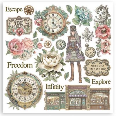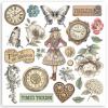 Vintage trifft Steampunk und mystische Gärten. Die Hauptmotive dieser Kollektion sind ganz klar Uhren und das Thema Zeit, hübsch verpackt in gedeckten Farben, mit Blumen und den unterschiedlichsten Mustern. Wie immer gibt es von Schablonen, über Farben, Moulds, Rice Paper bis hin zu Designpapieren alles, was das kreative Herz begehrt.