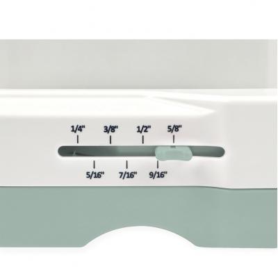 - Verstellbare Papierführung mit klaren Maßangaben in Zentimeter und Inches