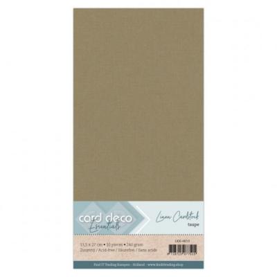 Leinen-Karton mit einer Grammatur von 240gsm. Je 10 Blatt pro Packung in 13,5 x 27cm. Das Papier ist strukturiert und Säurefrei.