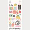 Eine eher feminine und fröhliche Kollektion. Rot, Pink, Grün und Gelb geben den Früchten, Blumen, Sprüchen und Mustern einen sommerlich warmen Touch. Perfekt für Projekte rund um Küche oder Sommerparties.