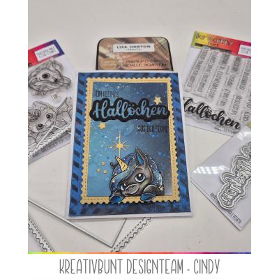 Die äußere Stanzschablone ist gleichzeitig die Outline-Stanze für den Schriftzug der Stanze und den Schriftzug des dazu passenden Stempelsets "Lettering Hallöchen" mit Artikel-Nr. 00125173. Das Stempelset bietet dazu noch jede