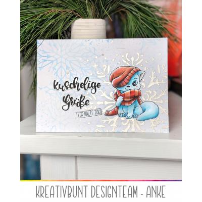 Die äußere Stanzschablone ist gleichzeitig die Outline-Stanze für den Schriftzug der Stanze und den Schriftzug des dazu passenden Stempelsets "Lettering Kuschelige Grüße" mit Artikel-Nr. 00122701. Das Stempelset bietet dazu