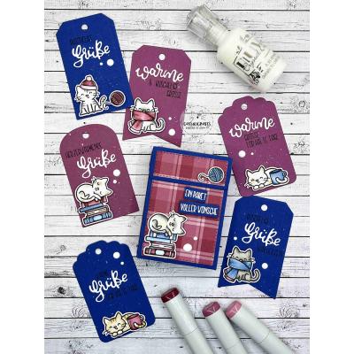Die äußere Stanzschablone ist gleichzeitig die Outline-Stanze für den Schriftzug der Stanze und den Schriftzug des dazu passenden Stempelsets "Lettering Kuschelige Grüße" mit Artikel-Nr. 00122701. Das Stempelset bietet dazu noch jede Menge ergänzende Texte zum Schriftzug.