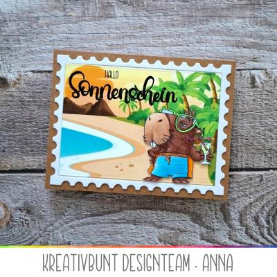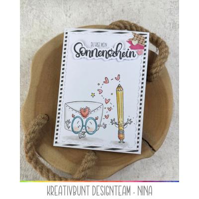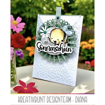 Das passende Stanz-Set "Layered Sonnenschein" (Artikel-Nr. 00120625) enthält den Schriftzug "Sonnenschein" in gleicher Größe als Stanzschablone sowie die Outline-Stanze für den gestempelten oder gestanzten Schriftzug.